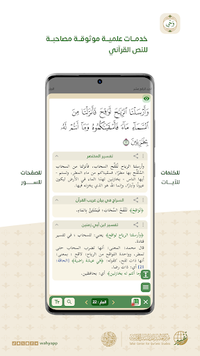 هذا التطبيق يقوم بتقديم مجموعة متعددة ومتنوعة من التفاسير لمساعدة المستخدم على فهم الآيات بشكل عميق.